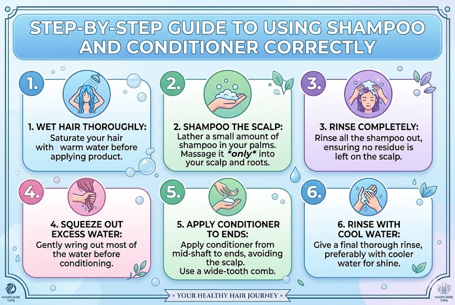 Step-by-Step Guide To Using Shampoo And Conditioner Correctly